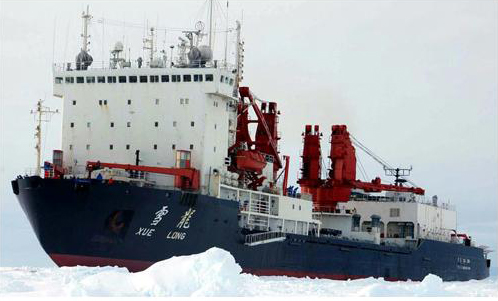 “雪龙”号极地科考船是在购进的乌克兰破冰船基础上改进而来,1994年服役,已完成多次南极航行。“雪龙”号长167米,宽22.6米,深13.5米,吃水9米,满载排水量21025吨,最大航速18节,续航力20000海里。主机13200千瓦,载重10225吨。