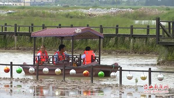 在上船跳湿地公园南侧,有一片即将建成的盐田,这是上船跳新开发的盐文化体验项目。突出“文旅”结合,留住盐文化的“根”。而围绕这个盐文化体验基地,通过夜间景观灯的建设,上船跳的“夜经济”也即将上线。