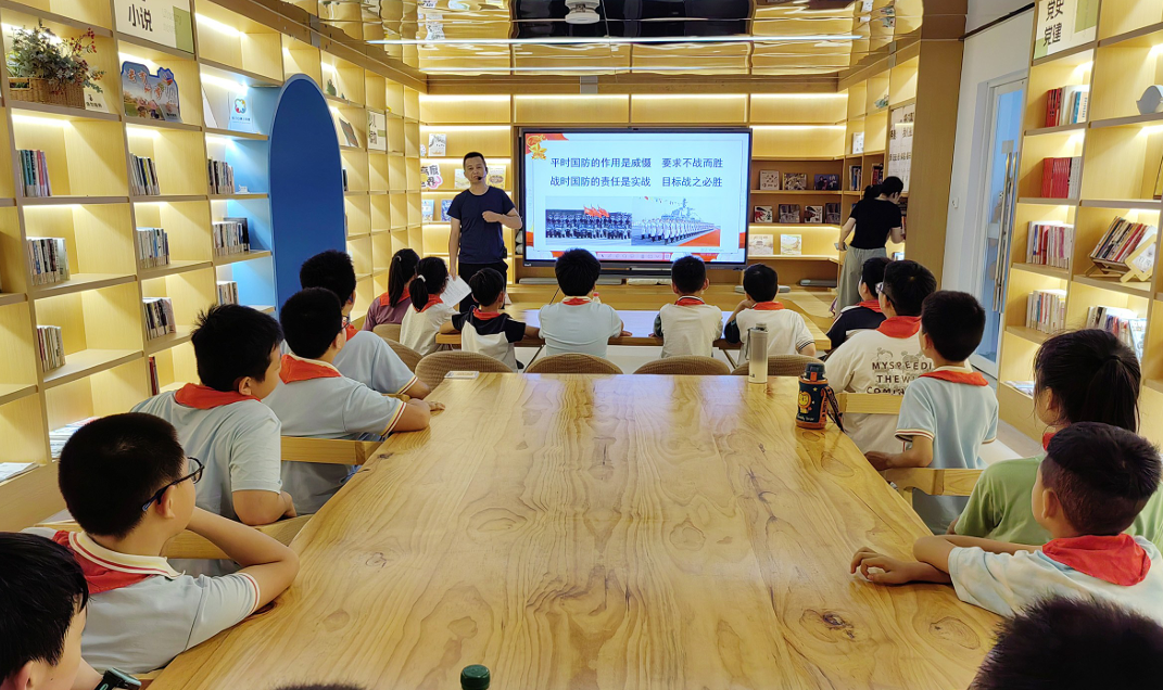 活动中,工作人员带领少先队员回望中国人民抗日战争暨世界反法西斯战争胜利80周年阅兵盛况,介绍国防基础知识与发展历程。活动还设置了趣味有奖问答环节,少先队员们踊跃举手互动,在轻松的氛围中深化了国防认知。此次活动为少先队员种下了关心国防、热爱祖国的种子,助力他们成长为有担当的强国少年。