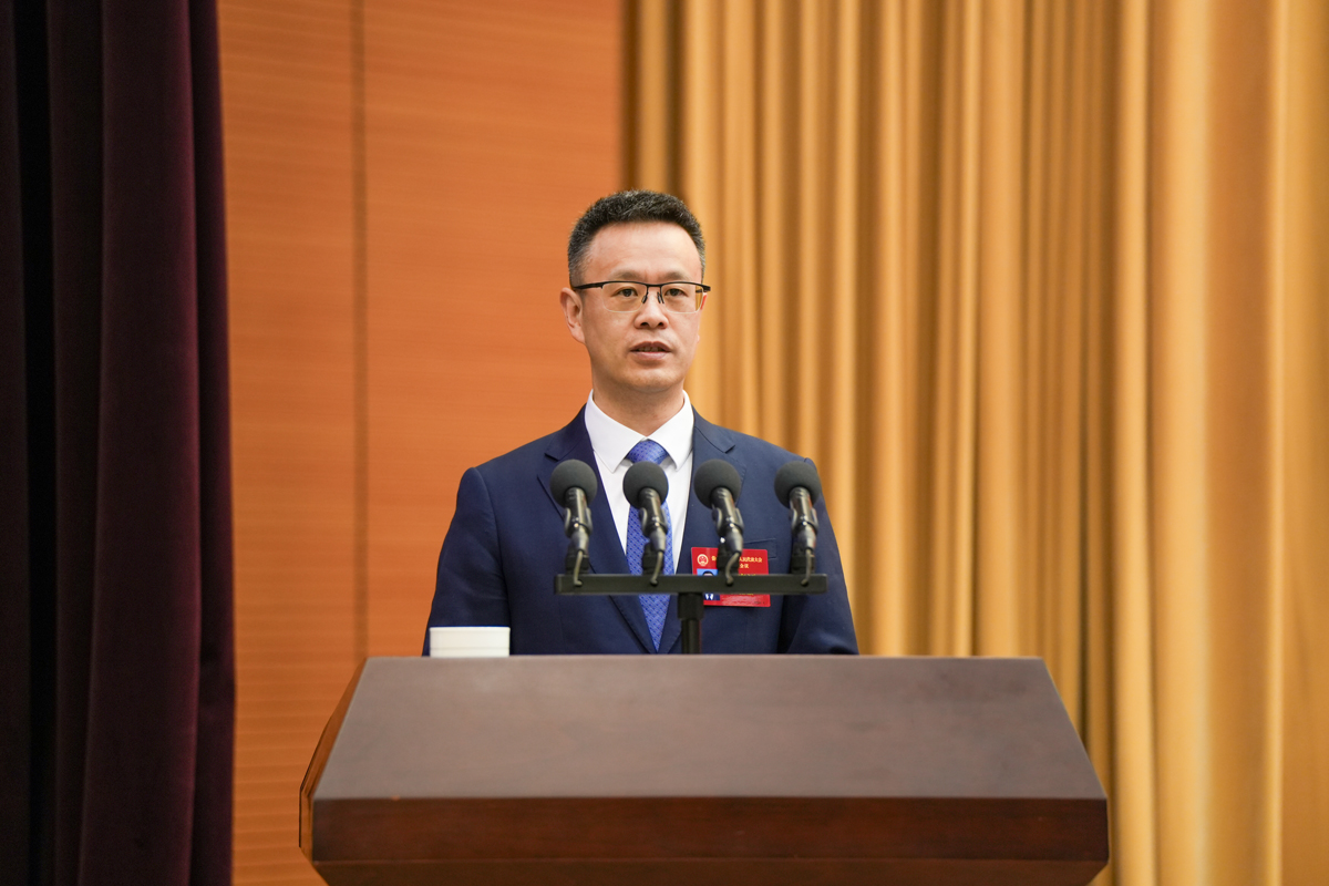 卢建波代表岱山县人民政府向大会报告工作。
