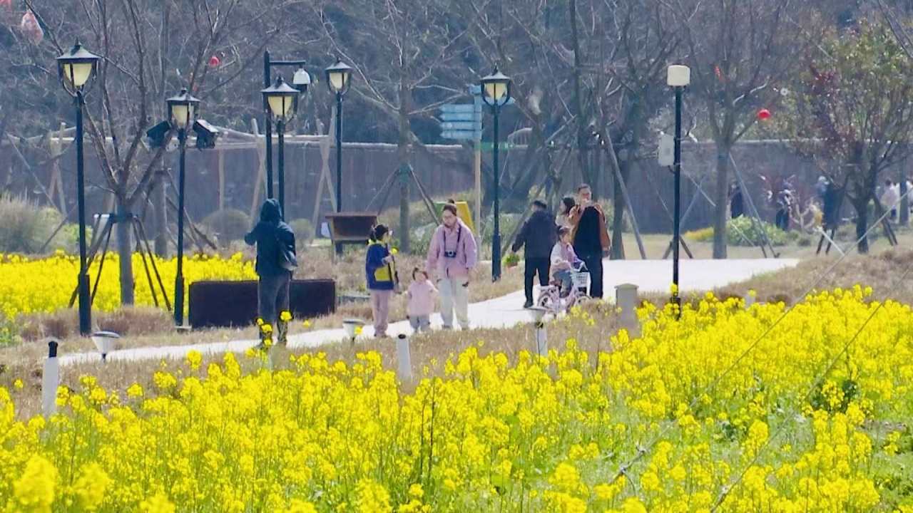 在东海郊野公园,成片的油菜花次第开放,金黄的花朵随春风摇曳,与蜿蜒的田埂构成了一幅清新田园诗画。不少游客特意驱车前来,沿着花间步道漫步,用镜头记录春日美景。“知道这里油菜花开了,我们就带孩子来了,看到成片的油菜花,小孩子玩得很开心,感觉很不错。”游客贺女士说道。