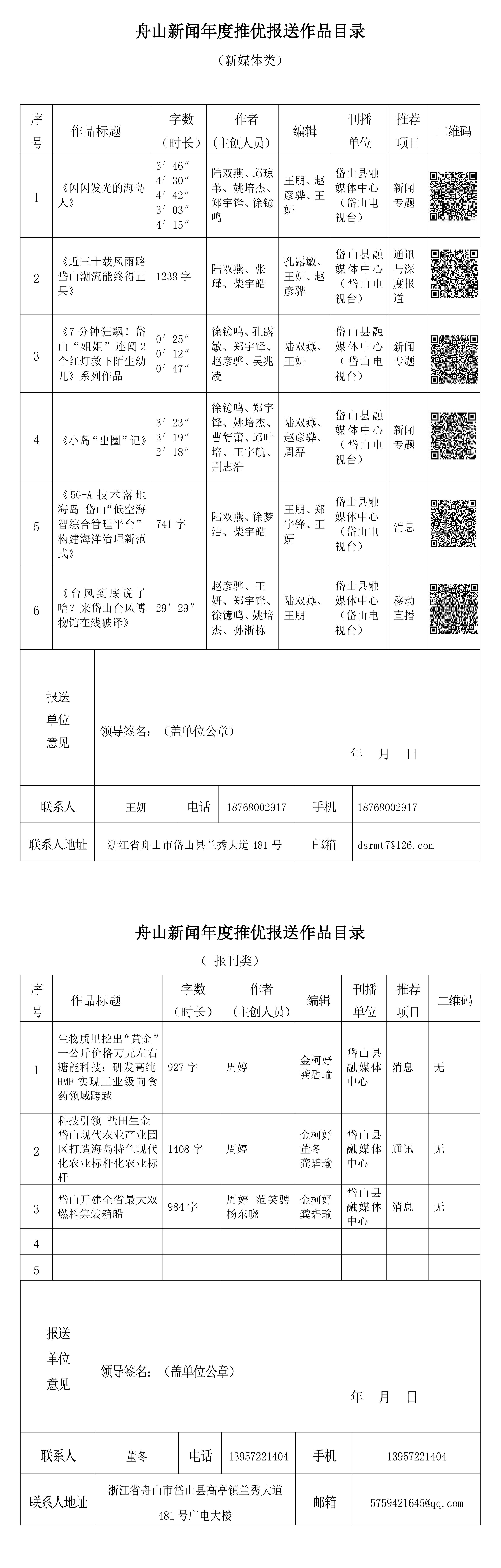 根据《关于开展2025年度舟山新闻奖评选工作的通知》要求,岱山县融媒体中心经民主推荐,选取《生物质里挖出“黄金”一公斤价格万元左右糖能科技:研发高纯HMF实现工业级向食药领域跨越》《科技引领盐田生金岱山现代农业产业园区打造海岛特色现代化农业标杆》《岱山开建全省最大双燃料集装箱船》等3件报纸类作品,《闪闪发光的海岛人》《近三十载风雨路岱山潮流能终得正果》《小岛“出圈”记》《5G-A技术落地海岛岱山“低空海智综合管理平台”构建海洋治理新范式》《台风到底说了啥?来岱山台风博物馆在线破译》《7分钟狂飙!岱山“姐姐”连闯2个红灯救下陌生幼儿》系列作品等6件新媒体类作品参加2025年度舟山新闻奖评选。