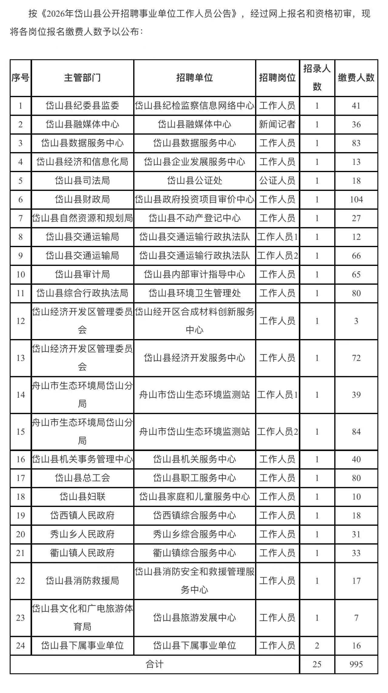 我县2026年事业单位公开招聘考试报名工作已于3月31日结束,记者从县人力资源和社会保障局了解到,本次招聘确认995人报考25个岗位,平均招录比40:1,其中最高招录比104:1。4月25日进行招聘笔试。