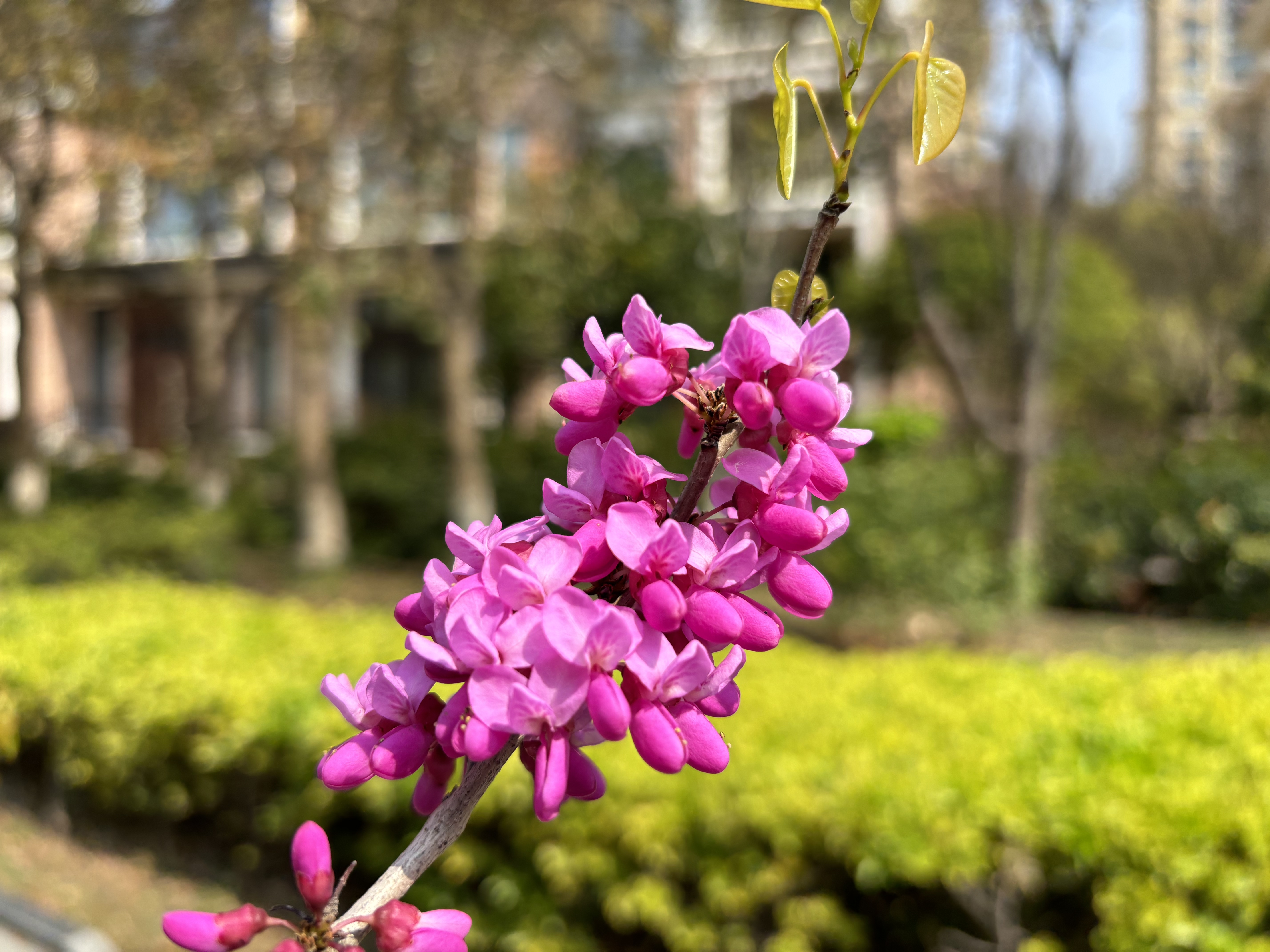 春暖花开,繁花似锦。这几日,岛城海棠紫荆次第绽放。盛开的垂丝海棠花瓣白里透粉,花梗细长如丝,随风摇曳,犹如美人起舞,明媚动人。紫荆满树嫣红,密密匝匝,惹人喜爱。