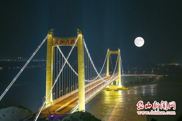 沉睡中的官山大桥,静静地卧在海面上,如一条巨龙连接着岛与岛之间的缝隙,桥面在灯饰的点缀下显得更加熠熠生辉。月光洒在桥顶的每一处角落,犹如慈祥的长者在向我们倾诉着岛城的过去,又憧憬着岛城的未来。