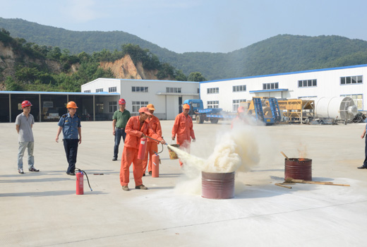 这是由县公路管理局和县蓬莱公路养护有限公司联合组织的火灾消防应急演练。演练中,养护工人在对模拟沥青加温烤油作业中火星溅出引发的火灾现场进行灭火。