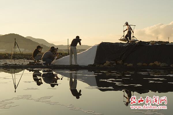连日来,我县天气持续放晴,如画般岛城美景不仅令游客感叹,也给我县摄影爱好者提供了极佳的创作时机遇。图为9月11日清晨,岱东北峰盐场,几位摄影爱好者扎堆记录日出及盐民清晨劳作的美景。