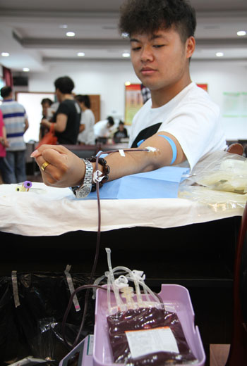 9月23日下午,岱东镇组织该镇居民和企业员工参加舟山市中心血站的献血活动。