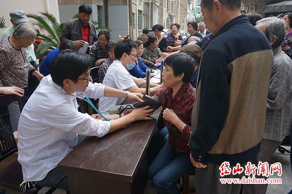 10月19日,县知联会社会综合组进蓬莱社区,为社区老人送医送药送科普。
