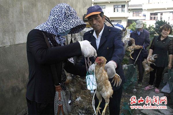 10月21日下午,岱东镇北峰社区北一村张家边,动物防疫员刘彩定正在给家禽注射疫苗。据了解,动物防疫员会在在一年4月和10月,给家禽注射疫苗,做好春防、秋防工作。