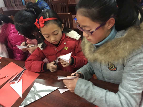 1月28日上午,高亭镇兰亭社区举办一堂剪纸课,30多名辖区内小学生共聚一堂,学习民间传统艺术。