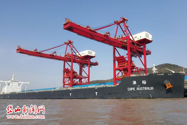 近日,宁波舟山港衢山港区鼠浪湖矿石中转码头迎来猴年第一艘外轮MV.CAPE.AUSTRALIA(裕奥)轮,这也是该港建港以来接卸的第二艘外轮。据了解,总装载18余万吨铁矿的“裕奥”轮将在鼠浪矿石中转码头减载8.44万吨后,驶往江苏太仓。