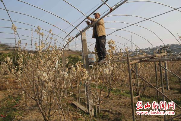 3月14日,记者来到位于岱东虎斗社区的科技扶农示范基地,樱桃种植户正在樱桃地里搭建大棚,目前,初步的框架已搭建完成。“我们搭建大棚一是为了防霜,二是为了防鸟吃樱桃。”种植户俞永水说,“预计今年樱桃4月25日后成熟,欢迎市民们来品尝。”