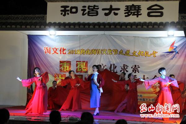 7月21日晚,县委老干部局联合县老年大学晚霞艺术团把淘文化2016舟山海洋文化节走进文化礼堂市民大舞台带到岱东镇虎斗社区磨心村,给村民们带去了一场“艺术大餐”。