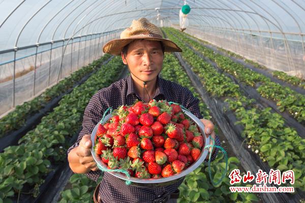 时值初冬,岱东小付草莓精品园种植的新鲜草莓全面上市。由于刚上市不久,现在草莓价格在40元/斤左右,虽然价格略高,但现在草莓挂果成熟的数量尚少,所以依然供不应求。图为在小付农场内,农场员工展示刚采的新鲜草莓。