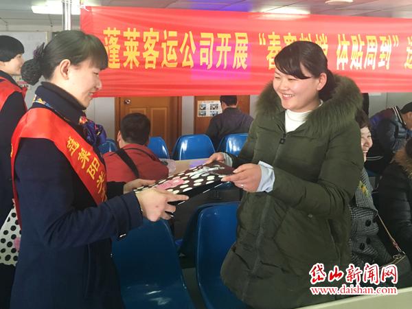 3月8日下午,岱山县蓬莱客运轮船有限公司团支部暨巾帼文明岗在“岱山8”轮上举行“春寒料峭 体贴周到”送温暖主题活动,工作人员为乘船的所有女士每位赠送一条精美的丝巾,丝巾虽小,情意无价。