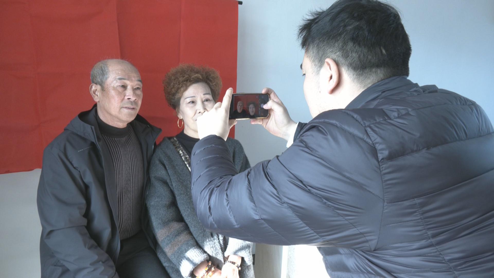 近日,便民服务小分队来到岱西镇火箭村,有序开展信息核对、照片拍摄、资料录入等工作。村民陈彩儿夫妇结婚证遗失多年,一直拖着未去补办,得知民政人员上门服务,他们便带着身份证、户口本来到了现场。火箭村村民陈彩儿笑着说:“以前的结婚证上是没有照片的,四十多年了,很高兴有这个机会来拍照片。”